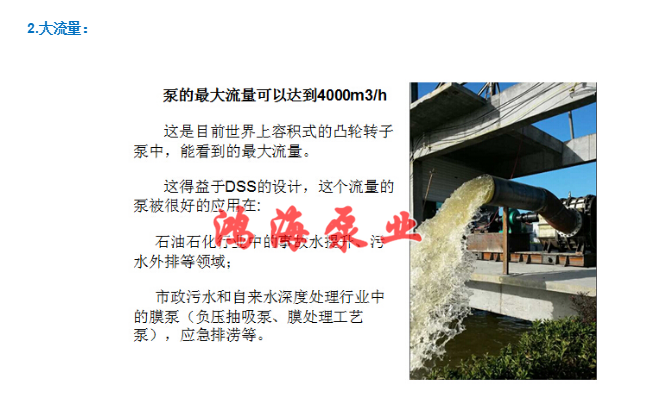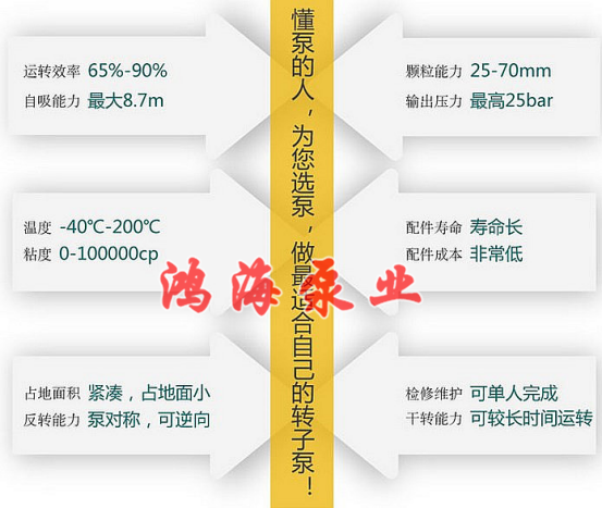 HTLB凸輪轉(zhuǎn)子泵 / 無堵塞排污泵 / 高粘度轉(zhuǎn)子泵用途 ,在自吸、氣液混輸、泥漿輸送等方面表現(xiàn)異;對腐蝕性強、粘度高或?qū)γ}動敏感的介質(zhì) 別合適。 、節(jié)能、堅固是這款凸輪轉(zhuǎn)子泵的主要 征。
