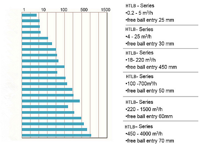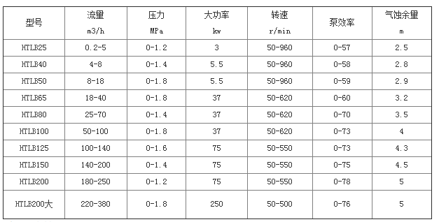 A.HTLB泵共有6個系列,24中泵型;流量范圍從0.2-4000m3/h