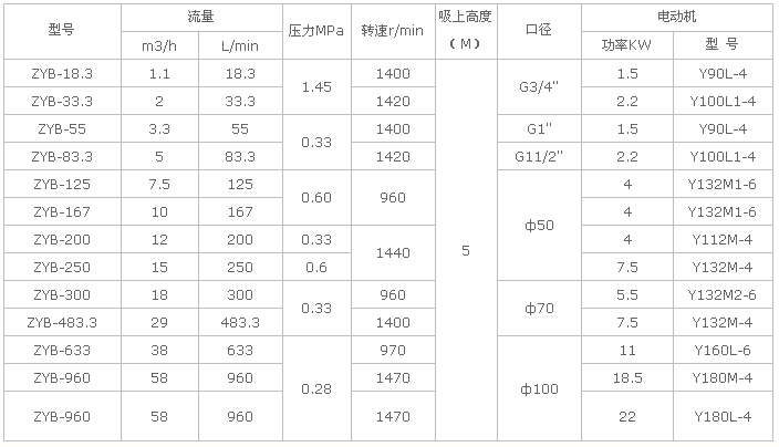 ZYB渣油泵性能參數表: